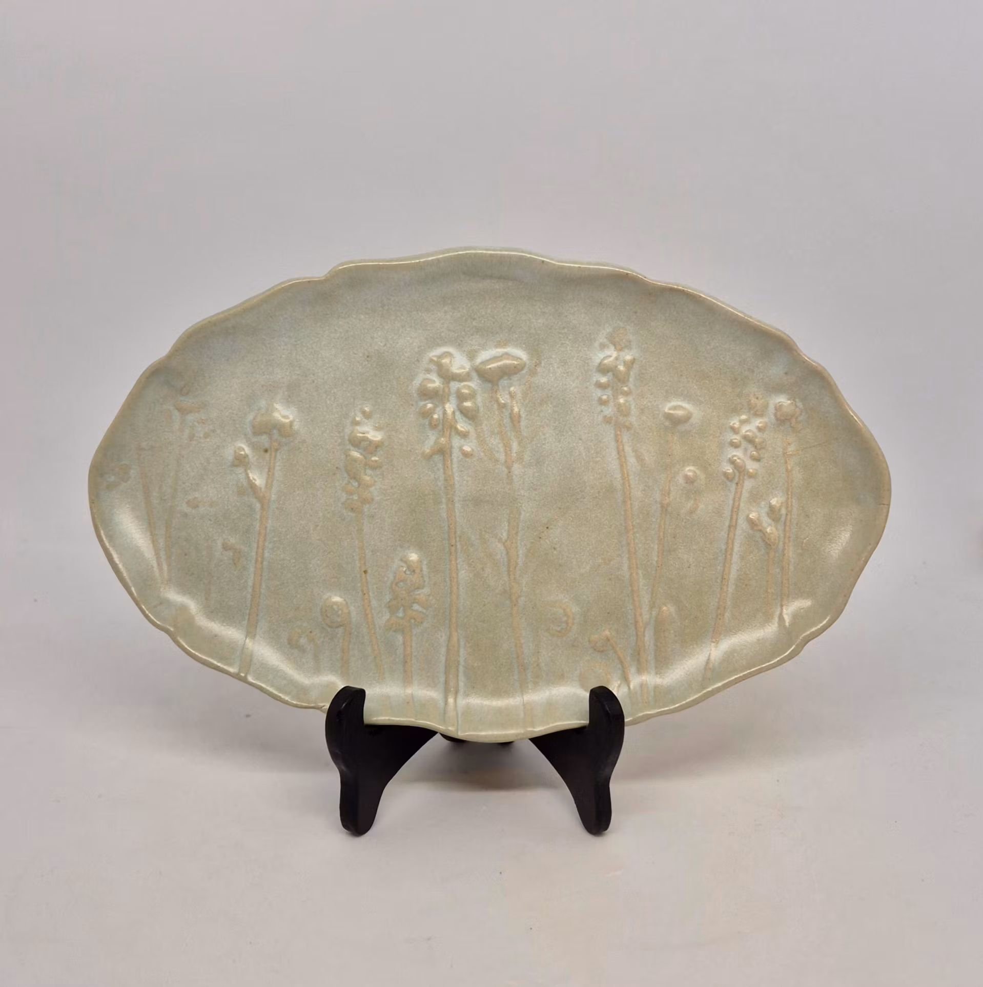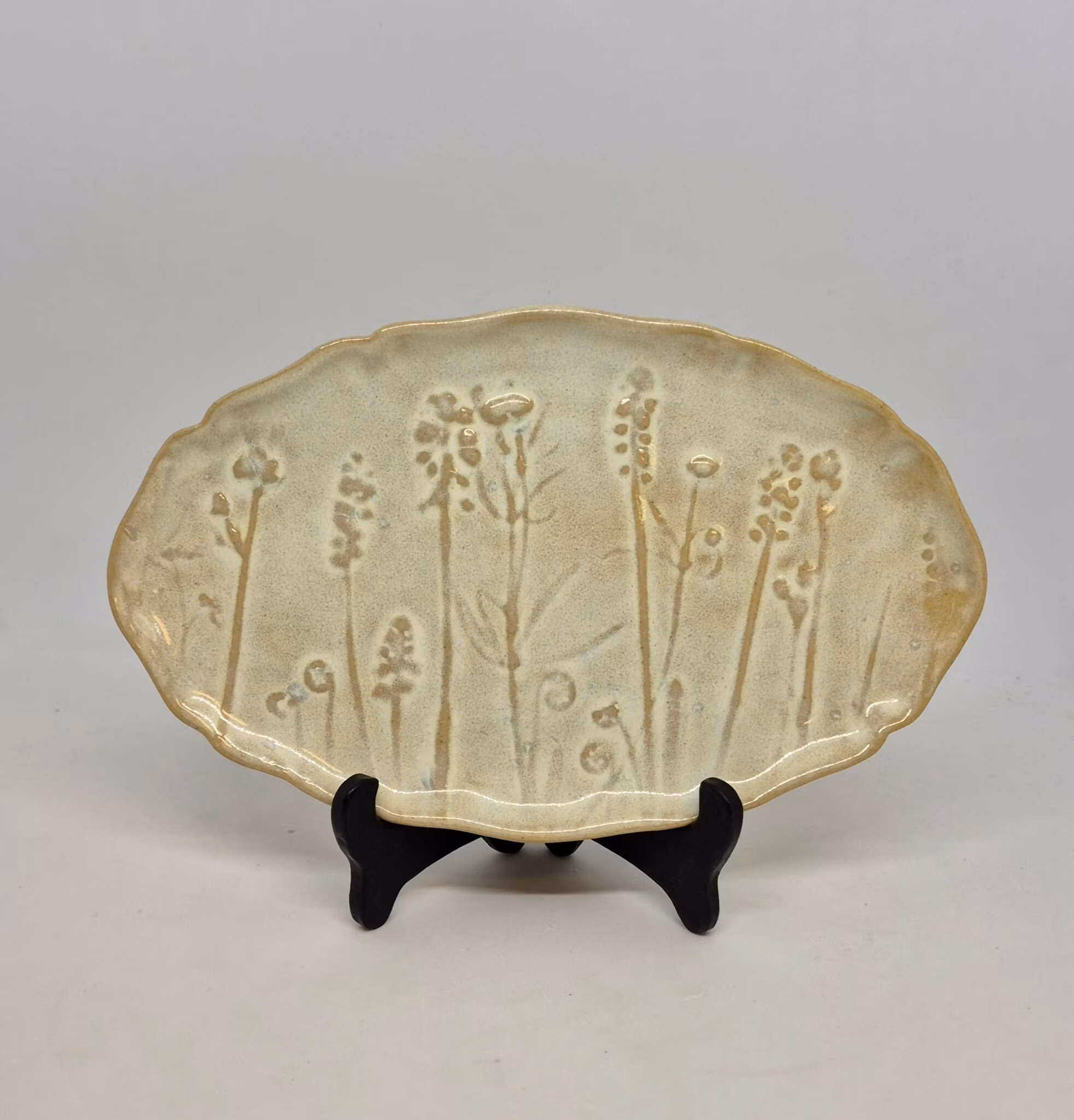 Assiett eller frukostfat med mönster tryckt i relief.